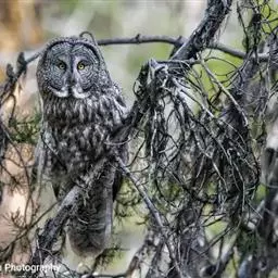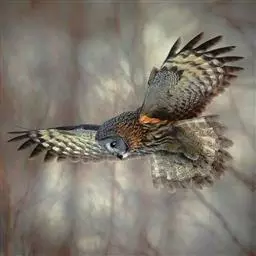 灰林鸮是鸱鸮科、林鸮属鸟类。体长约40厘米;头大而圆,没有耳羽,面盘明显,橙棕色或黑褐色;上体暗灰色,…