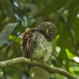 鬼鸮是鸟纲鸱鸮科的鸟类, 全长23-26厘米。共有6个亚种。雌雄羽色相同。额、头顶及枕部褐色,…