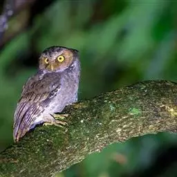 黄嘴角鸮:小型鸟类,体长18-21厘米。的茶黄褐色角鸮。眼黄色,嘴奶油色,特征为无明显的纵纹或横斑,…