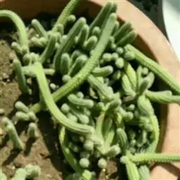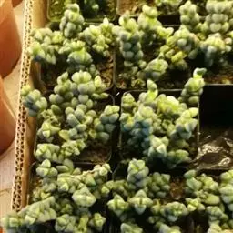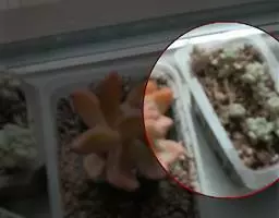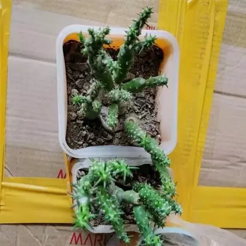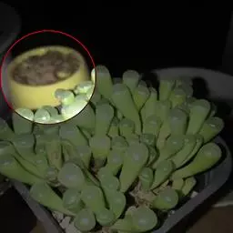 休眠中的碧光环如图所示,当秋天慢慢来临,温度降低到25℃,它们也就慢慢的苏醒了。这个时候可以浇透水,碧光环不怕水,土壤透气,干透浇透就可以的。碧光环的根系很发达,建议用深点盆养。