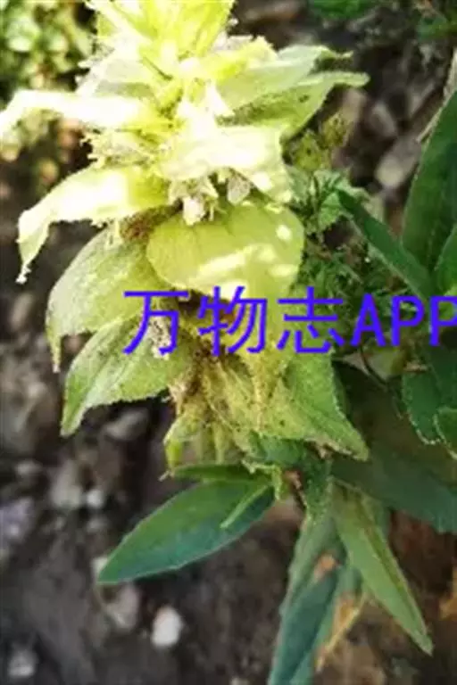多年生草本,具地下走茎。茎粗壮,直立,高18-25厘米,四棱形,具槽,沿棱及节上被白色具节长柔毛。叶柄具狭翅,基部抱茎,边缘具缘毛;叶片纸质,披针状长圆形,长5-11厘米,宽1.8-3厘米,先端钝或稍圆,基部楔形,下延,边缘疏生波状圆齿或几全缘,具缘毛,上面无毛或被极少的疏柔毛,下面仅叶脉被长柔毛或仅近顶端有星散疏柔毛。穗状聚伞花序由多数轮伞花序组成;苞叶大,向上渐小,白黄、白或绿紫色,卵形或阔卵形,长3.5-5厘米,宽1.8-2.7厘米,先端渐尖,基部圆形,抱轴,全缘,上面被长柔毛,下面仅叶脉或有时仅顶端被疏柔毛;花梗短,被长柔毛。花萼钟状或略呈漏斗状,长7-9毫米,基部前方略膨大,具10脉,其中5脉不甚明显,萼齿5,狭三角形,长为花萼之半或较长,整齐,先端渐尖,边缘具缘毛。花冠白、白绿或白黄色,具紫色斑纹,狭漏斗状,长1.8-2.5厘米,外面被疏长柔毛,冠筒基部前方略膨大,内面具毛环,从前方向下弯,冠檐二唇形,上唇小,直立,2裂,裂片近圆形,下唇延伸,3裂,中裂片狭扇形,长约6.5毫米,顶端微缺,侧裂片长圆形,长约3毫米。雄蕊4,二强,着生于冠筒中部,伸出,花丝细,挺直,被长柔毛或疏柔毛,花药肾形,1室。花柱无毛,伸出,较雄蕊略短,先端2浅裂,裂片细尖。花盘杯状,裂片近相等,不明显,前方微膨大。子房4裂,被长柔毛。小坚果倒卵状或倒卵长圆状三棱形,背部具网状皱纹,腹部中间微微隆起,具1大果脐,而果脐几达腹面之半。花期7-9月,果期8-10月。