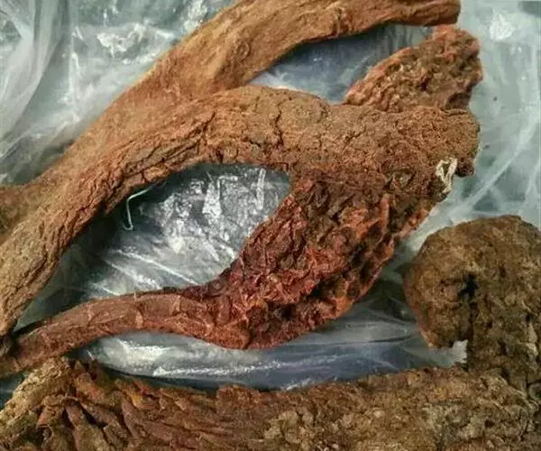 寄生根根上着生大小不等的锁阳芽体,初近球形,后变椭圆形或长柱形,径6-15毫米,具多数须根与脱落的鳞片叶。