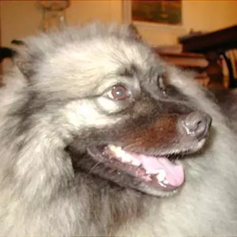 荷兰毛狮犬耳朵小,呈三角形,在头部较高的位置,且竖立;口吻中等长度,既不粗糙也不尖细,…