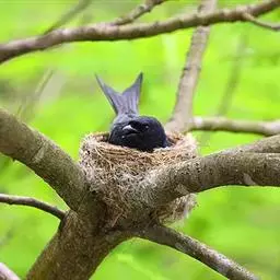 繁殖期约在3-6月间,巢多置于阔叶树顶端高处一些小的分枝末端枝杈上,巢呈杯形,与卷尾科的其他种类相似。像小孩摇篮似的随风摇摆。巢主要由细枝、芦苇茎、根和枯草等材料构成,牢固地固定在枝权上。巢外壁还有蛛网,有时还或多或少装饰一些苔藓、地衣和树皮等,距地高5米以上。每窝产卵窝卵数为3-4枚。卵为长卵圆形和尖卵圆形两种类型,多为白色,偶尔亦有乳白色,被有淡红色、褐色或紫色深浅两层斑纹,尤以钝端较密。