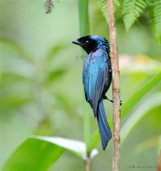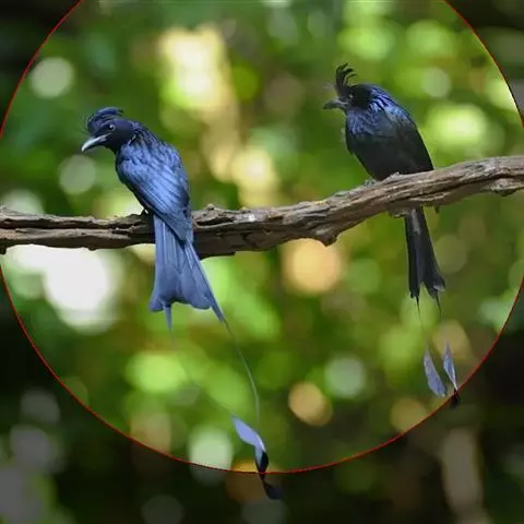 雌性成鸟体羽似雄鸟,仅金属闪光不甚显著;最外侧尾羽较雄鸟稍短。幼鸟的簇状额羽丛不发达;体羽微沾光泽;翅下覆羽及腋羽黑褐色,羽端白色斑大而显著;尾羽呈正常深叉羽端,最外侧一对尾羽不甚延长,羽干不裸出,无延伸的“盘状尾”。