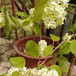 皱叶荚蒾是五福花科荚蒾属的小乔木植物。植株高达4米;叶柄及花序均被由黄白色、黄褐色或红褐色簇状毛组成的厚绒毛;小枝粗壮,稍有棱角;叶革质,卵状矩圆形至卵状披针形;聚伞花序稠密,总花梗粗,四角状,花冠呈现白色,雄蕊高出花冠;果实红色,后变黑色,宽椭圆形,无毛;花期为4-5月;果熟期为9-10月。皱叶荚蒾原产于中国,分布于陕西、湖北、四川及贵州等地。生长于山坡林下或灌丛中,海拔800-2400米。其性喜好阳光,耐半阴,喜温暖,有一定的耐寒性,喜湿润,不耐涝,耐中度盐碱,但在深厚肥沃、排水良好的中性或微酸性沙质土壤中生长更好,耐修剪,生长缓慢。其一般的繁殖方式为播种和扦插繁殖。皱叶荚蒾味苦,性凉。具有清热解毒、凉血止血的功效。可用于湿热痢疾、痈疽疮疖、咳血、吐血、便血、跌打损伤等疾病。皱叶荚蒾给人以郁郁葱葱的景象,全年观叶、春季观花