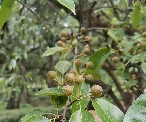 豆梨,多年生落叶果树,乔木。蔷薇科梨属落叶乔木,别名鹿梨、棠梨、野梨、鸟梨、酱梨等,原产我国华东、华南各地至越南,有若干变种。常野生于温暖潮湿的山坡、沼地、杂木林中,可用作嫁接西洋梨等的砧(zhēn)木。根、叶有药用价值,可润肺止咳,清热解毒,治疗急性眼结膜炎;果实可健胃,止痢。