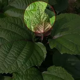 叶对生,长圆状披针形至椭圆形,长8-10厘米,宽3-5厘米,顶端锐尖,叶面较平展,叶色鲜绿至暗绿,网状脉下陷,叶边锯齿深而锐,叶柄长1-2厘米,被茸毛。