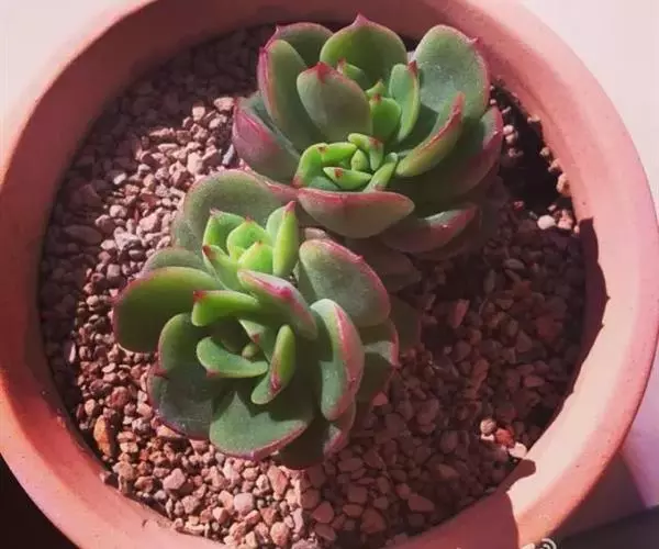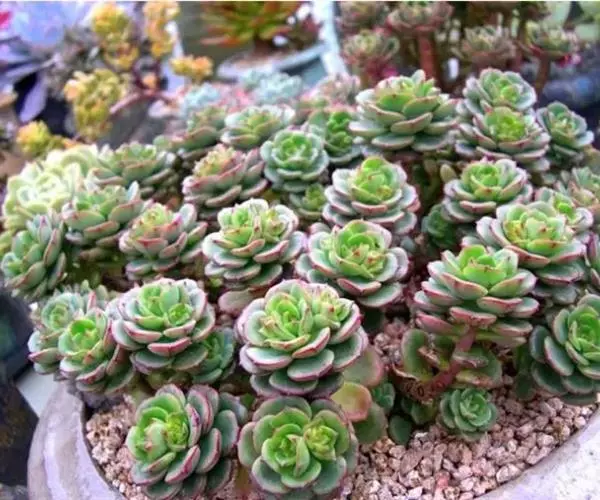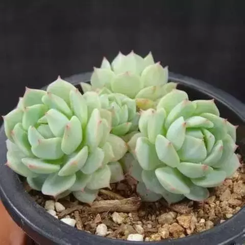 艾格尼丝并没有什么特别明显的休眠期喜水性之类的,艾格尼斯玫瑰为景天科拟石莲属多肉植物,其叶片圆润,厚实,叶缘为红色,株型紧凑。