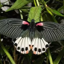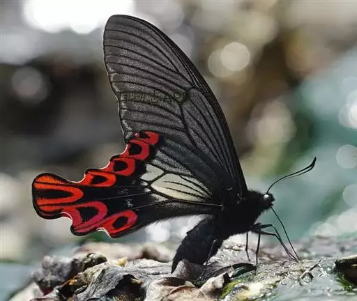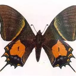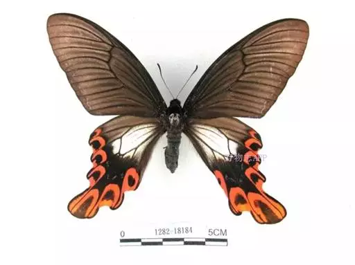 宽尾凤蝶外观特征 展翅宽100~110mm。下翅中央具大块的白斑,并有宽大的尾状突起,尾突中具两条翅脉通过;下翅外缘、内缘具明显的红色弦月纹。翅膀较雄虫稍宽广,其馀大致相同。生态习性 成虫出现于春、夏二季,生活在中、北部中海拔山区。喜好访花吸蜜,雄虫会在湿地吸水。为保育类昆虫。由于具有特别宽大的尾状突起,同时因二支翅脉贯穿其间,乃其他凤蝶所无之特征,因此举世闻名。