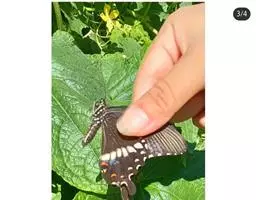 天堂凤蝶翅展可达105mm。前、后翅自基角至后缘约1/2~2/3端为纯净的宝蓝色,后角至后缘1/3…
