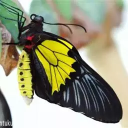 亚历山大女皇鸟翼凤蝶,又称大鸟翼蝶,是鳞翅目凤蝶科鸟翼蝶属蝴蝶;翅膀圆阔、褐色,…