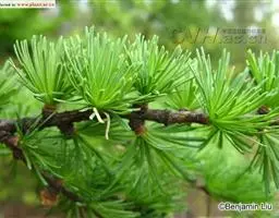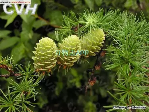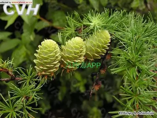乔木,高达30米,胸径1米;树皮暗褐色,纵裂粗糙,成鳞片状脱落;枝平展,树冠塔形;幼枝有淡褐色柔毛,后渐脱落,一年生长枝淡黄色或淡红褐色,有白粉,直径约1.5毫米,二、三年生枝灰褐色或黑褐色;短枝上历年叶枕形成的环痕特别明显,直径2~5毫米,顶端叶枕之间有疏生柔毛;冬芽紫褐色,顶芽近球形,基部芽鳞三角形,先端具长尖头,边缘有睫毛。叶倒披针状条形,长1.5~3.5厘米,宽1~2毫米,先端微尖或钝,上面稍平,下面中脉隆起,两面均有气孔线,尤以下面多而明显,通常5~8条。雄球花淡褐黄色,卵圆形,长6~8毫米,径约5毫采;雌球花紫红色,苞鳞反曲,有白粉,先端三裂,中裂急尖。球果卵圆形或圆柱状卵形,熟时黄褐色,长2~3.5厘米,径1.8~2.8厘米,种鳞46~65枚,上部边缘波状,显著地向外反曲,背面具褐色瘤状突起和短粗毛;中部种鳞卵状矩圆形或卵方形,长1.2~1.5厘米,宽约1厘米,基部较宽,先端平截微凹;苞鳞紫红色,窄矩圆形,长7~10毫米,基部稍宽,上部微窄,先端三裂,中肋延长成尾状长尖,不露出;种子倒卵圆形,长3~4毫米,径约2.5毫米,种翅上部三角状,中部较宽,种子连翅长1.1~1.4厘米。花期4~5月,球果10月成熟。