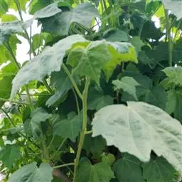 危害植株叶片。被害叶初呈黄白色小斑点,后逐渐扩展至全叶,造成叶片卷曲、枯黄脱落。
