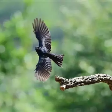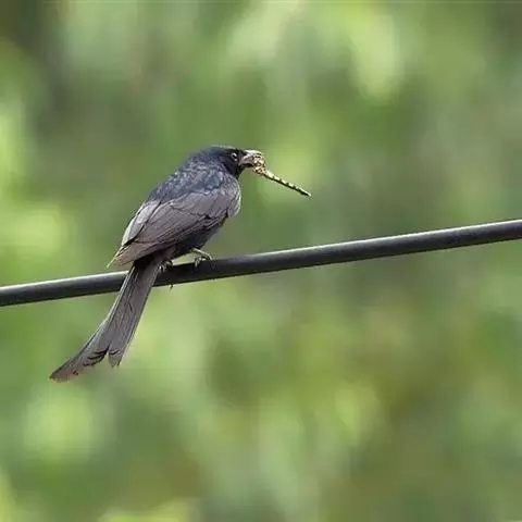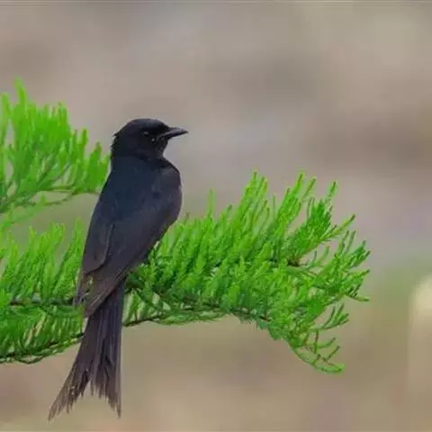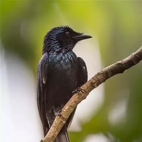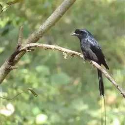 发冠卷尾(学名:Dicrurus hottentottus)是中型鸟类,体长28-35厘米。通体绒黑色缀蓝绿色金属光泽,额部具发丝状羽冠,外侧尾羽末端向上卷曲。栖息于海拔1500米以下的低山丘陵和山脚沟谷地带,多在常绿阔叶林、次生林或人工松林中活动。单独或成对活动,很少成群。主要在树冠层活动和觅食,树栖性。主要以金龟甲、金花虫、蝗虫、蚱蜢、竹节虫、椿象、瓢虫、蚂蚁、蜂、蛇、蜻蜓、蝉等各种昆虫为食。分布于中国、印度、缅甸、老挝、泰国、越南、中南半岛、菲律宾和印度尼西亚。