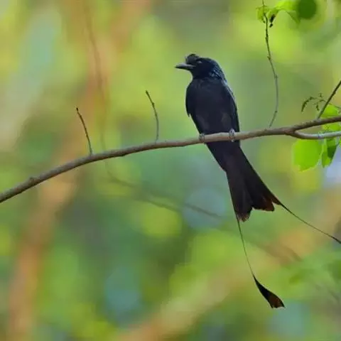 发冠卷尾雄性成鸟(繁殖羽)