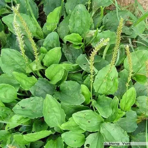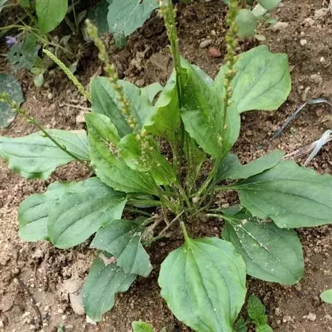 大车前(学名:Plantago major L.)多年生草本。根状茎短粗,具须根。基生叶直立,叶片卵形或宽卵形,顶端圆滑,边缘波状或不整齐锯齿;叶柄明显长于叶片。花茎直立,穗状花序占花茎的1/3-1/2;花密生,苞片卵形,较萼裂片短,二者均有绿色龙骨状突起;花萼无柄,裂片椭圆形;花冠裂片椭圆形或卵形。蒴果椭圆形,种子8-15,少数至18,棕色或棕褐色。花期6-8月,果期7-9月。生于草地、草甸、河滩、沟边、沼泽地、山坡路旁、田边或荒地,海拔5-2800米。分布欧亚大陆温带及寒温带。以全草入药,在秋季采收全草,采收时挖起全株,洗净泥砂,除去枯叶,晒干即可。