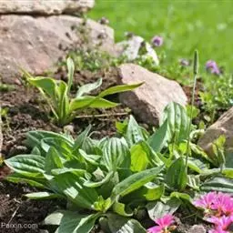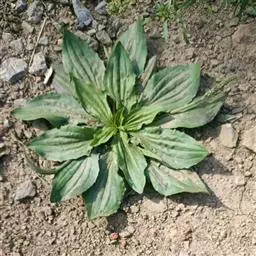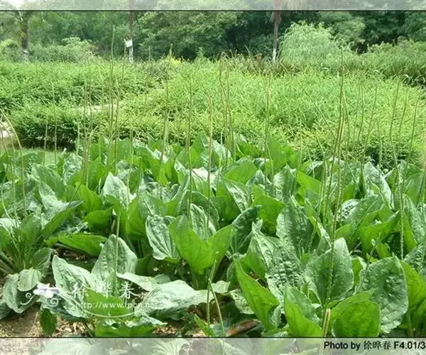 播种覆土后,立即喷水,盖上稻草和薄膜,保持湿润,以利于发芽。每天傍晚揭膜喷水1次,保持床土湿润,6-7 天即可出苗,出苗后立即揭除稻草和薄膜,以增加光照,防止长成高脚苗。车前草种子细小,出苗后生长缓慢,易被杂草抑制,因此幼苗期应及时除草,一般苗期进行2-3 次除草,待苗长出 4-5 片叶时即可移栽。