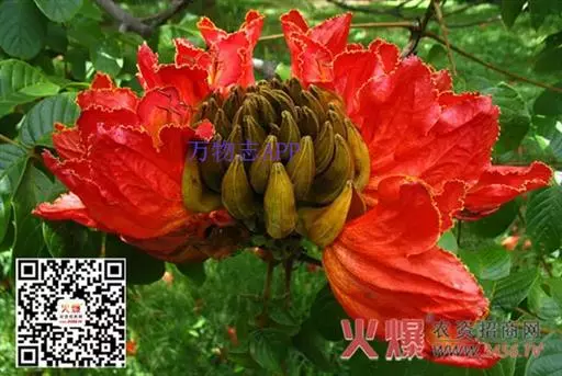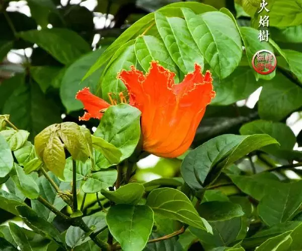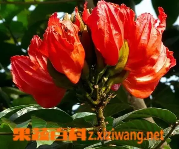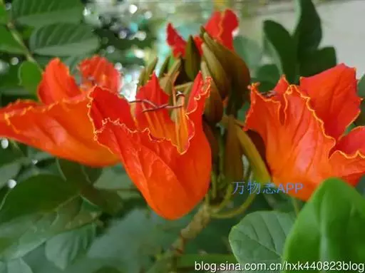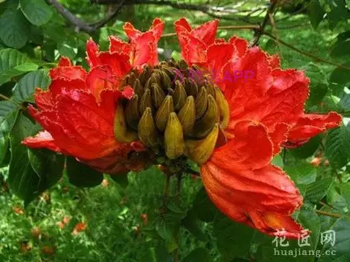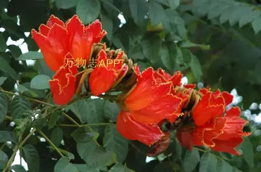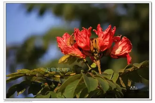 又因其花朵形似郁金香,故英文名意为郁金香树。在热带非洲,其花朵可储存雨水或露水,故称之喷泉树。