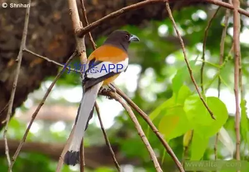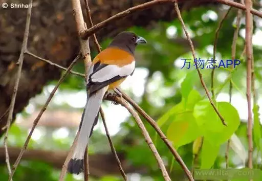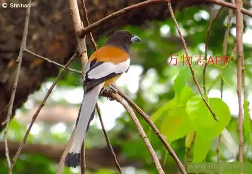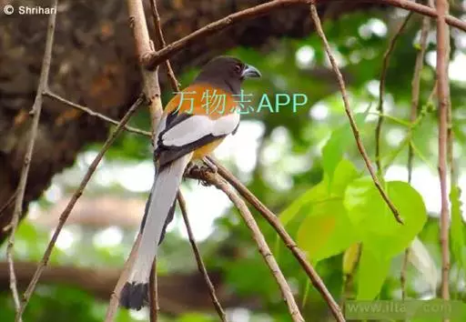 棕腹树鹊(学名:Dendrocitta vagabunda)是鸦科、树鹊属中型鸟类,体长35-45厘米。整个头、颈、颏、喉至上胸烟灰褐色,其余上、下体羽棕褐色或黄褐色,翅上有一大的白色翅斑,飞翔时尤为明显。尾长、灰色具宽阔的黑色端斑。特征极明显,容易识别。虹膜橙褐色或红褐色,嘴灰黑色,脚黑褐色。