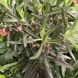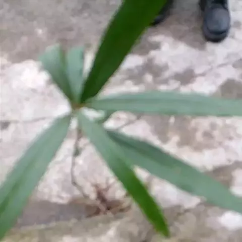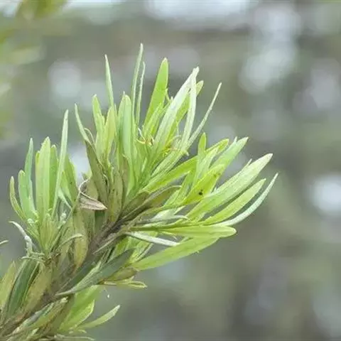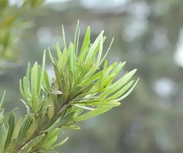 叶互生,螺旋状排列(形似莲台),先端尖突单叶,叶形为线形或狭披针形,叶基锐形,叶端渐尖形或圆形,叶缘全缘(形似金刚杵)、不规则,边缘略反卷,主脉明显,叶上下表面光滑,革质。
