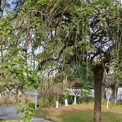 树皮暗灰色,粗糙,不规则纵裂。幼树枝条直立,且被白色毛;老树枝条先端下垂,有时木栓质发达成为瘤状。…