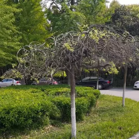 该种的树干相对较短,而且多呈扭曲状,小枝具有卷曲而下垂的特点,整体上看树形较美,在北方绿化中被广为应用,是北方地区比较流行的园林风景树。