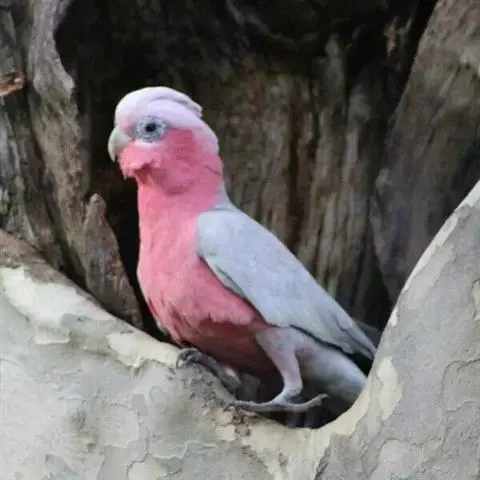 米切氏凤头鹦鹉 米切氏凤头鹦鹉3、4岁时开始有繁殖的能力,在求偶时雄鸟喂食雌鸟的行为较少,但常互相理毛,通常筑巢在水源地附近,产卵前雄鸟与雌鸟会一起收集枯枝树叶准备巢穴,窝卵数约为2至4颗,孵化需26天,8星期后幼鸟的羽毛差不多全部长齐,也有些会与粉红胸 凤头鹦鹉杂交,