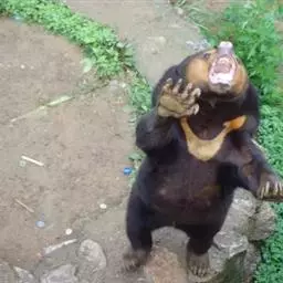 马来熊,是食肉目熊科马来熊属哺乳动物。体胖颈短,眼睛和耳朵小;头部短圆;全身乌黑光滑;鼻唇周为棕黄色,…