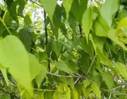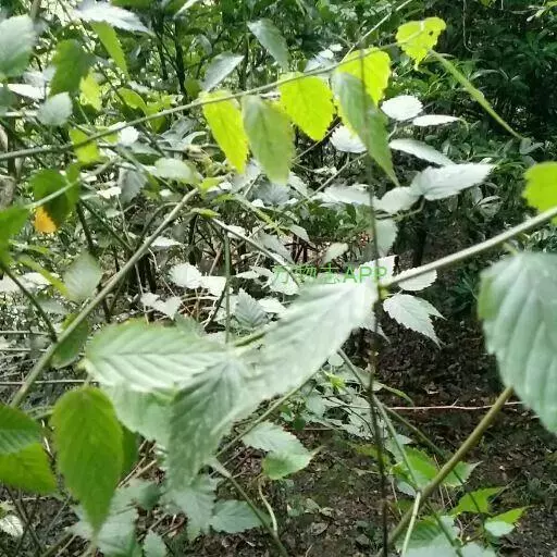 叶互生,三角状卵形或卵圆形,顶端长渐尖,基部圆形、截形或微心形,边缘有尖锐重锯齿,两面绿色,上面无毛或有稀疏柔毛,下面沿脉或脉腋有柔毛;叶柄长5-10毫米,无毛;托叶膜质,带状披针形,有缘毛,早落。