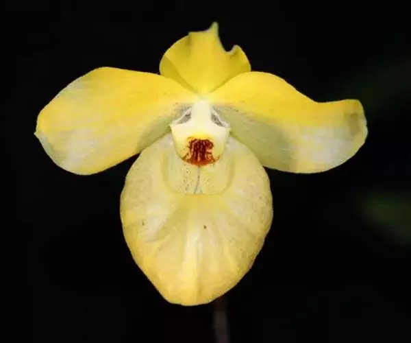 花葶纤细或粗壮,长达50厘米,密布柔毛,下部被数枚紧抱于花序柄的筒状鞘;总状花序长2-9厘米,疏生2-8朵花;花苞片披针形或卵状披针形,长5-9毫米,被柔毛;花梗和子房长2-2.5厘米,密布柔毛;花黄色;萼片椭圆形,通常长12-17毫米,宽5-7毫米,先端稍钝或锐尖,具7条脉,背面被柔毛。