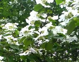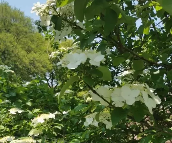 琼花的寿命较长,扬州大明寺内一株清朝康熙年间种植的琼花,已有300多年的历史,如今依然繁茂,风姿如故,风韵仍不减当年。 琼花的美,是一种独具风韵的美。它不以花色鲜艳迷人,不以浓香醉人,每到春夏之交,自然界一片姹紫嫣红,琼花却花开洁白如玉,风姿绰约,格外清秀淡雅;而每当秋风萧瑟,群芳落英缤纷,凋零衰败之际,琼花展示的却是绿叶红果的迷人秋色。其叶、其果,红绿相映,分外鲜艳,经久不凋,给萧瑟的秋色点染了艳丽的色彩和欢快的气氛。琼花枝条广展,树冠呈球形,树姿优美,树形潇洒别致。
