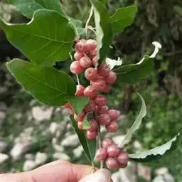 果实红色而后变黑色,椭圆形,长约12毫米;核扁,矩圆形至宽椭圆形,长10-12毫米,直径6-8毫米,有2条浅背沟和3条浅腹沟。花期4月,果熟期9-10月。