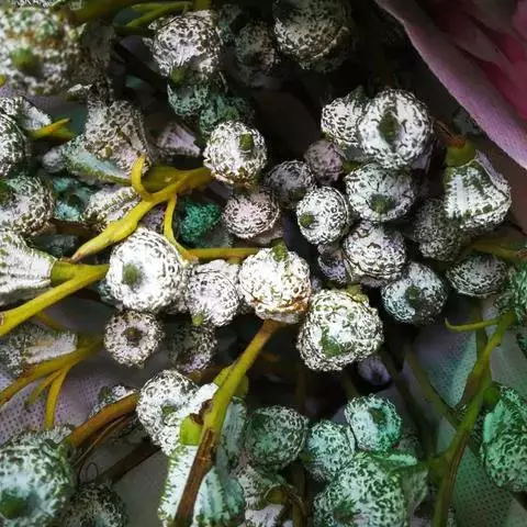 伞形花序粗大,有花4-8朵,总梗压扁,长2.5厘米以内;花梗短、长不过4毫米,有时较长,粗而扁平;花蕾长1.4 -2厘米,宽7-10毫米;蒴管半球形或倒圆锥形,长7-9毫米,宽6-8毫米;帽状体约与萼管同长,先端收缩成喙;雄蕊长1-1.2厘米,花药椭圆形,纵裂。