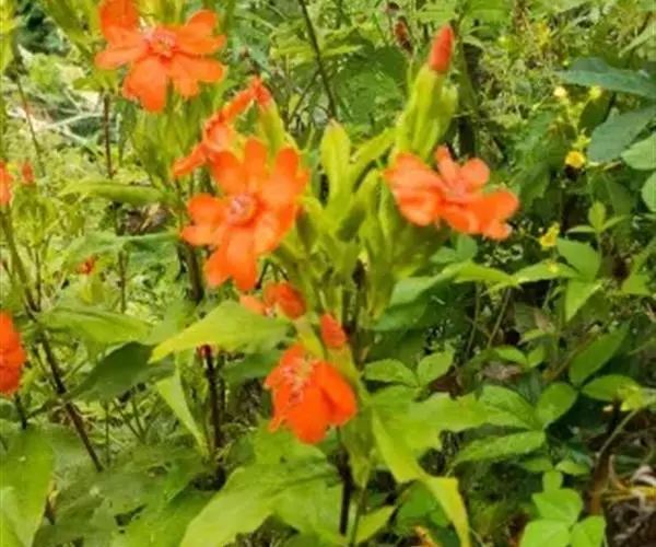 浅裂剪秋罗,别名:剪秋罗、毛缘剪秋罗,拉丁文名:Lychnis cognata Maxim. 石竹科、剪秋罗属多年生草本,高35-90厘米,全株被稀疏长柔毛。根簇生,纺锤形,稍肉质。茎直立,不分枝或上部分枝。叶片长圆状披针形或长圆形,基部宽楔形,不呈柄状,顶端渐尖,两面被疏长毛,沿脉较密,边缘具缘毛。蒴果长椭圆状卵形,长约15毫米;种子圆肾形,肥厚,长约1.5毫米,黑褐色,两侧微凹,具短条纹,脊圆,具乳凸。花期6-7月,果期7-8月。