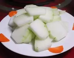 2将鸭头、颈、翅膀、尾、脚掌剁下待用,鸭身剖成两片,分别切成3.5厘米长、0.8厘米宽的块。马铃薯去皮洗净,用刀修削成均匀的桔子状12个,下油锅炸三分钟捞起,再上笼旺火蒸十分钟至熟取出。