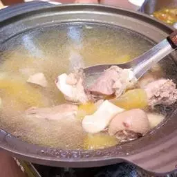 沙茶酱蒸牛仔骨 原料:鸭1只(1250克左右),沙茶酱125克、葱段15克、水发香菇25克、马铃薯12个、姜片5克、蒜泥25克、辣椒粉10克、白酒25克、白糖15克、酱油50克、味精10克、湿淀粉50克、猪骨汤750克、熟鸡油10克、熟猪油750克(实耗100克)。