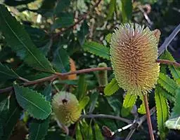 红花银桦(学名:Grevillea banksii R.Br.)是山龙眼科银桦属植物,常绿乔木,树高4-8米,胸径达15-18厘米。树干端直,树冠圆锥形,树皮黑褐色,呈不规则的浅纵裂,幼枝、嫩芽及叶柄上密被锈褐色或灰褐色粗毛,单叶互生,叶背被褐色绒毛与银灰色绢毛,总状花序,花两性。