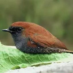 幼鸟,头顶与背羽均为栗褐色,满布黑褐色横斑,过眼纹褐色或不显著,下体的胸、胁部满布黑褐色鳞斑。
