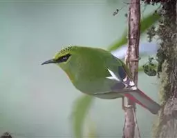 雌性成鸟:额基黑色斑较小;眼先和眉纹暗灰白色;胸侧及两胁白色,杂有黑褐色横斑;余部与雄鸟相似,但羽色不及雄鸟鲜亮。