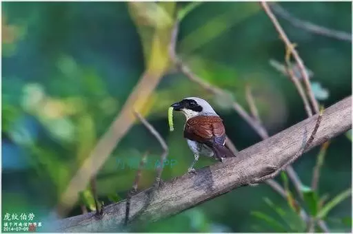 虎纹伯劳:全长165毫米左右。雄性成鸟:额基、眼先和宽阔的贯眼纹黑色;前额、头顶至后颈蓝灰色;上体余部包括肩羽及翅上覆羽栗红褐色,杂以黑色波状横斑;飞羽暗褐色,外翻具棕褐色羽缘;尾羽棕褐色,具不明显的褐色横斑,外侧尾羽端缘棕白色;下体纯白色,两胁略沾蓝灰色;覆腿羽白杂以黑斑。雌性成鸟羽色与雄鸟相似,但前额基部黑色较小,眼先及过眼黑纹沾褐,头顶灰色及背羽的栗褐色均不如雄鸟鲜艳;胁部缀以黑褐色鳞状横斑。一般栖息于树林、分布自平原至丘陵、山地,喜栖于疏林边缘以及巢址选在带荆棘的灌木及洋槐等阔叶树。性格凶猛,常停栖在固定场所,寻觅和抓捕猎物。主要食物是昆虫,特别是蝗虫、蟋蟀、甲虫、臭虫、蝴蝶和飞蛾,也吃小鸟和蜥蜴。分布于亚洲多国,该物种的模式产地在印度尼西亚爪哇。