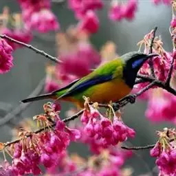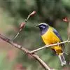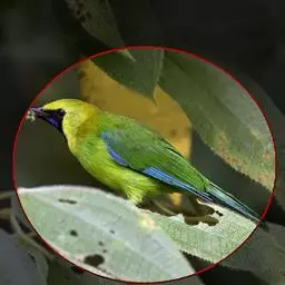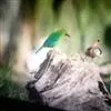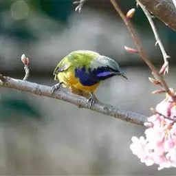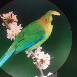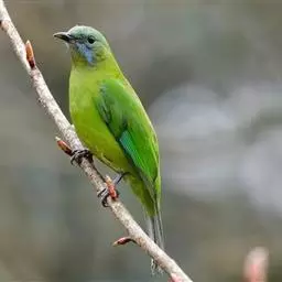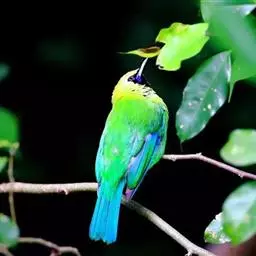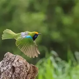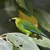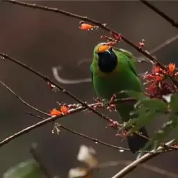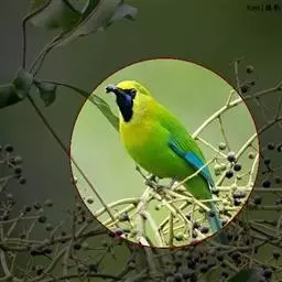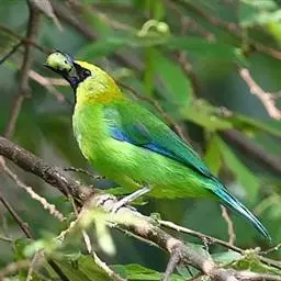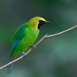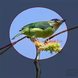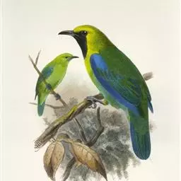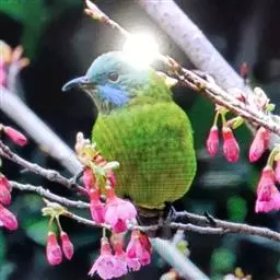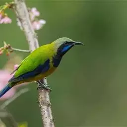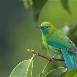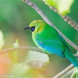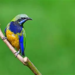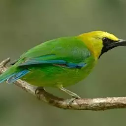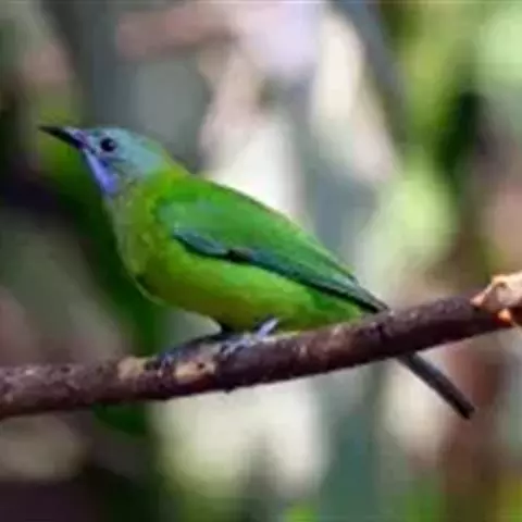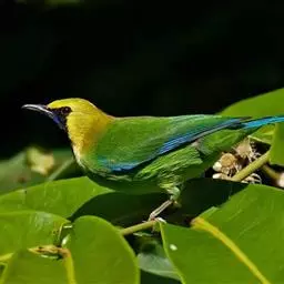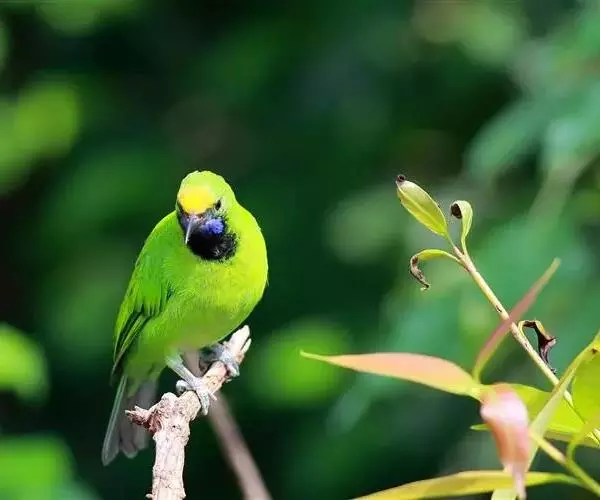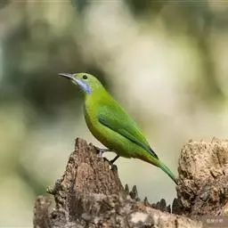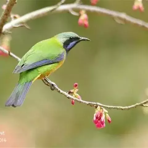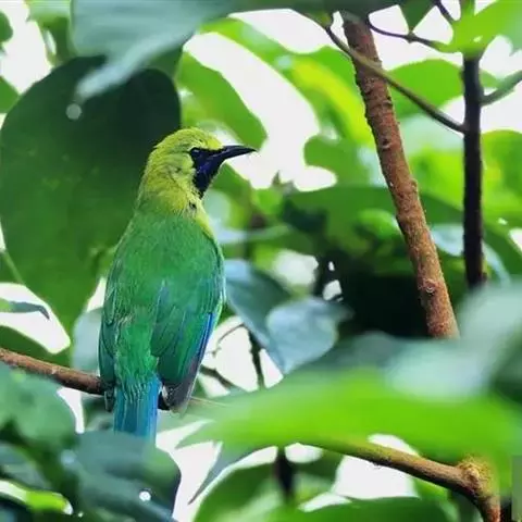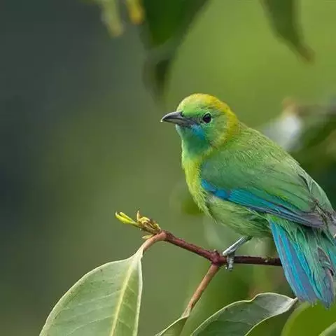 蓝翅叶鹎:小型鸟类,体长15-18厘米。雄鸟通体草绿色,尾蓝绿色,肩和翅亮蓝 色,胸缀有黄色,…