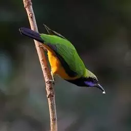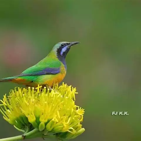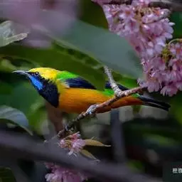 金额叶鹎是和平鸟科、叶鹎属的鸟类。体长16-20厘米。额和头顶前部金桔色,整个上体包括两翅表面草绿色。…