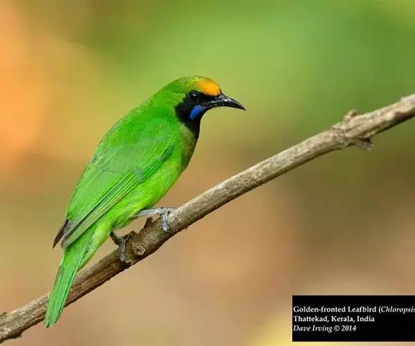 金额叶鹎(学名:Chloropsis aurifrons)是和平鸟科、叶鹎属的鸟类。体长16-20厘米。额和头顶前部金桔色,整个上体包括两翅表面草绿色。颏、喉黑色,其外围有一圈黄色,其余下体浅绿色,翼缘蓝紫色,翅上小覆羽翠蓝色。野外特征极明显,容易识别。虹膜褐色,嘴黑色,脚铅色或蓝灰色。