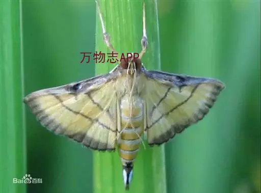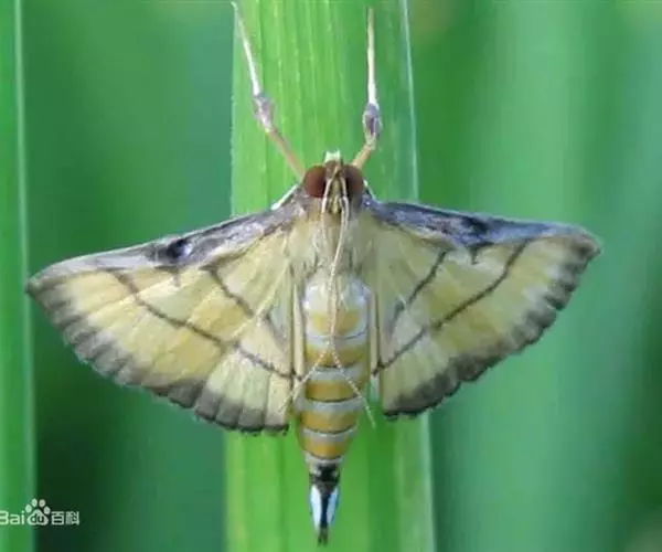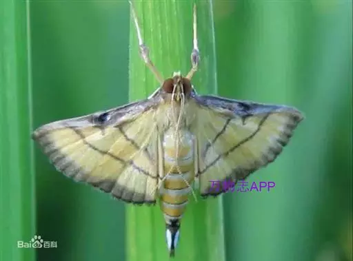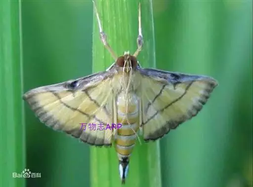 稻纵卷叶螟,别称为刮青虫、白叶虫,苞叶虫等,是中国水稻产区的主要害虫之一,广泛分布于各稻区。除为害水稻外,还可取食大麦、小麦、甘蔗、粟等作物及稗、李氏禾、雀稗、双穗雀稗、马唐、狗尾草、蟋蟀草、茅草、芦苇等杂草。以幼虫为害水稻,缀叶成纵苞,躲藏其中取食上表皮及叶肉,仅留白色下表皮。苗期受害影响水稻正常生长,甚至枯死;分蘖期至拔节期受害,分蘖减少,植株缩短,生育期推迟;孕穗后特别是抽穗到齐穗期剑叶被害,影响开花结实,空壳率提高,千粒重下降。 。