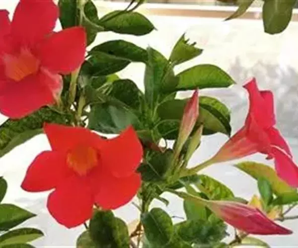 长势很旺盛的品种易长满花盆,引起缺肥,造成下部叶片发黄和不开花。所以,要及时移栽到大花盆中,移栽时要拿掉旧的支撑物,把蔓生枝条缠绕在新的支撑物上。