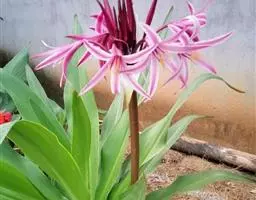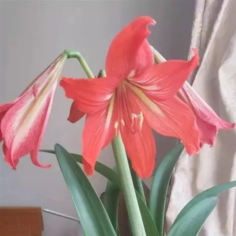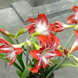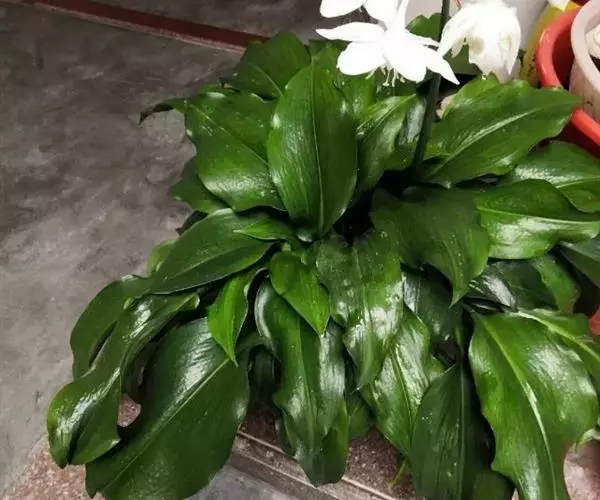 多年生常绿鳞茎类观赏花卉。地下鳞茎长圆球形,鳞茎着生白色肉质根,分枝较多,根系发达鳞茎周围毎年春季都要萌发幼小的侧枝。叶片长宽椭圆形,一般长约30-35厘米,宽为15-18厘米,表面暗绿色,背面绿色,纵向脉纹明显,每个鳞茎有叶片4-5片。栽培一个小鳞茎,大约2-3年才能开花。