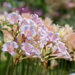 上盆栽培:南美水仙小鳞茎的栽培,是分株繁殖的一项重要工作,基质消毒后,要经过一星期的晾晒,才能装入苗床,并用粗河砂等做好排水层。栽培时,将幼苗植于花盆中央,如果是木箱苗床,可按6厘米×6厘米的株行距进行栽培。深度以埋住子鳞茎、能够稳固株体为度,幼苗与基质必须密切贴合。对于因浇水而倾斜的植株,要随手扶直,必要时,插上细竹竿加以保护;如果分株苗只有鳞茎,没有根系,栽培时,可用纯河砂催根。河砂在使用前必须用100℃的鲜开水冲洗,杀菌消毒。一般经过30-40天的精心养护,就能顺利长出新根。