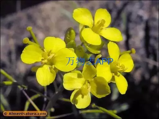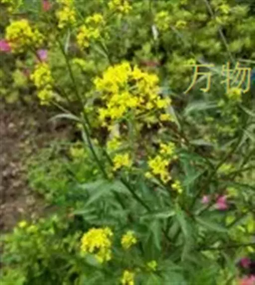 总状花序顶生,初密集,花后延长;萼片椭圆状披针形,内轮2枚顶端隆起成兜状,长2.5-3毫米,宽0.5-1毫米;花瓣黄色,长倒卵形,长3-4.5毫米,宽0.7-1.2毫米,基部具爪。长角果线状四棱形,长2-3.5厘米,紧贴果轴而密集着生,果熟时稍开展,果瓣隆起,中脉显著。种子椭圆形,长约1.5毫米,宽约0.5毫米,深褐色,表面具细网纹;子叶缘倚胚根。花、果期5-8月。