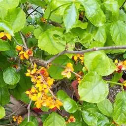 苦皮藤是卫矛科南蛇藤属植物。藤状灌木;小枝常具4-6纵棱,皮孔密生,圆形到椭圆形,白色,腋芽卵圆状,…